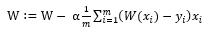 이번 포스트에서는 Gradient descent를 텐서플로우 코드로 어떻게 구현하는지를 알아보겠습니다. 구현에 앞서 Gradient descent 식을 보며 순서를 정하겠습니다.