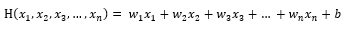 우리는 단순 선형 회귀에서 Hypothesis를 H(x) = Wx + b와 같이 표현했습니다. 그렇다면 변수가 3개면 어떻게 표현할까요? 변수가 늘어난 개수만큼 가중치(W)를 필요로하므로, 다음과 같이 표현할 수 있습니다.