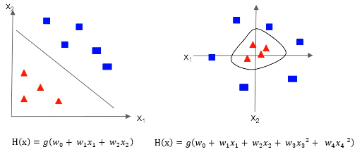 왼쪽은 Logistic Regression을, 오른쪽은 Linear Regression을 나타낸 그래프입니다.