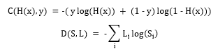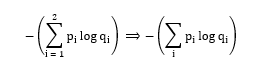 결과부터 말하자면, 사실 위의 두 cost function은 표현만 다를 뿐 같은 식입니다. 이를 증명하기 위해 Logistic cost에서 y를 p1, H(x)를 q1, y-1을 p2, 1-H(x)를 q2로 치환하면 -(p1·log(q1) + p2·log(q2))로 표현할 수 있습니다. 아래는 치환한 식에 ∑를 써서 변형한 식(좌)과 일반화한 식(우)입니다.