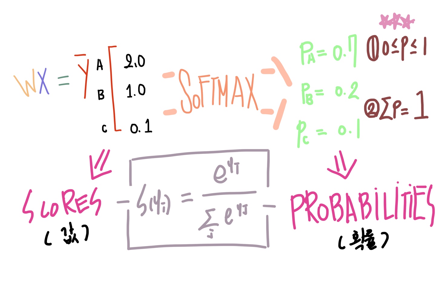 따라서 이번 포스트에서 우리는 수식 1.1의 Ŷ에 sigmoid 모듈을 효율적이고 간단하게 적용하는 방법인 Softmax를 배우고, 나아가 Softmax classification의 Cost function을 해석해보겠습니다. (설명에 나오는 손그림들은 강의와 udacity를 인용하여 iPad에서 다시 그렸습니다.)