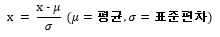 이제 데이터 전처리 과정의 하나인 Feature scailing에 대해 알아보겠습니다. Features scailing에는 Normalization(정규화)과 Standardization(표준화)의 2가지 방법이 있는데, 본 강의에서는 후자인 Standardization을 소개하고 있지만 두 방법 모두 중요하므로 Andrew ng 교수님의 Machine learning 강의에서 Normalization에 대한 설명을 빌려와 두 방법 모두를 설명하겠습니다. 먼저 Standardization(표준화)은 데이터들의 평균과 표준편차를 이용해 "(데이터 - 평균) / 표준편차"의 식으로 해당 분포에서의 데이터가 평균으로부터의 위치를 표준편차 단위로 옮겨서 표현하는 방법입니다. Standardization을 하면 각 데이터들은 평균을 기준으로 얼마나 떨어져 있는지를 나타내는 값으로 변환됩니다. 아래는 Standardization을 식과 파이썬 코드로 표현하였습니다. 물론 사이킷런 등의 다양한 파이썬 라이브러리를 활용하여 standardizaiton을 더욱 간결하고 효율적으로 표현할 수 있으므로, 구글링으로 다양한 코드를 만나보시길 바랍니다.