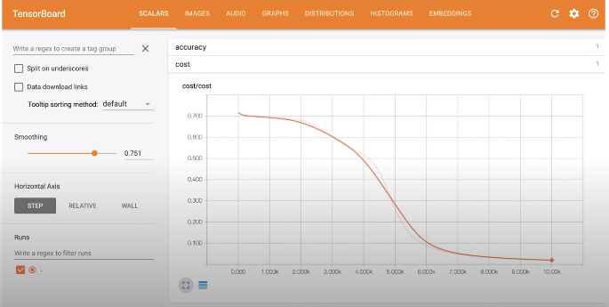 따라서 이런 경우 우리는 아래와 같이 Tensorboard를 이용하여 그래프로 값의 변화를 한눈에 볼 수 있습니다.