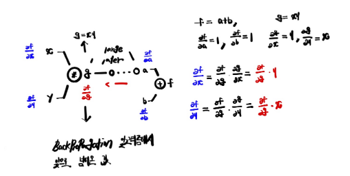 위의 모형에서 y는 바로 이전 레이어의 값을 sigmoid한 0 ~ 1 사이의 값을 가집니다. 예를 들어 y가 바로 이전 레이어의 값을 sigmoid한 0.01의 값을 가질 때, x를 미분한 df/dx는 (dg/dx) * (df/dg) = 0.01 * (df/dg)의 값을 가집니다. 이런 식으로 앞으로 계속 올라가다 보면 미분 값은 0.01 * 0.03 * 0.06... 와 같이 매우 작은 값을 가질 것입니다. 노드를 미분한 값은 노드가 결과에 미치는 영향을 의미하기 때문에 실제로 노드가 Output Layer에서 멀어질수록 결과에 영향을 작게 미칠 것입니다. 이는 0과 1 사이의, 1보다 작은 수만을 갖는 sigmoid의 특성상 앞의 노드로 갈수록 값이 줄어들기 때문입니다. 물론 위의 모형에서 연산자가 *가 아닌 +였다면 df/dx는 (dg/dx) * (df/dg) = 1 * (df/dg)로 (df/dg)에 따라 미치는 영향이 바뀌었을 수도 있습니다.