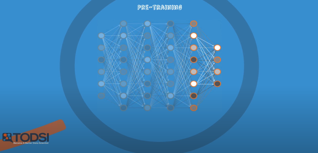 먼저 Input Layer의 하나의 노드를 x라고 할 때, Forward 과정에서는 x를 weight과 곱한 값 X를 Hidden Layer의 노드에 전달합니다. 이후 weight는 그대로 둔 채 Hidden Layer의 X를 다시 Backward하여 Input Layer에 전달하며 이 값을 x̂라고 합니다. 이 때 x와 x̂의 차가 최소가 되는 weight를 최적의 weight로 설정합니다. 이 때 Forward와 Backward 과정을 각각 auto encoder, auto decoder라고 합니다. 이후 인접한 다음 레이어와 weight을 학습하는 과정을 반복하는데, 이 과정을 Pre-training이라고 합니다. 반복해가며 마지막 레이어까지 Pre-training 과정이 끝난 네트워크에 데이터를 가지고 학습하는 것을 Fine Tuning이라고 합니다. Fine Tuning이란 기존에 학습되어져 있는 모델을 기반으로 새로운 목적에 맞게 변형하고 이미 학습된 weight으로 부터 학습을 업데이트 하는 방법을 말합니다. 위에서는 Pre-training에 의해 학습되어진 모델과 weight을 기반으로 학습을 업데이트하는 것을 의미합니다. 사실 지금까지의 설명만으로는 RBM의 학습과정을 확실히 이해하기 어려웠습니다. Auto encoder/decoder과정을 예시를 들어 설명하고 싶었지만 아직은 지식이 부족하여 정확히 이해하지 못하여 설명해드리지 못한 점 죄송합니다. 다만 혹시나 RBM 학습 과정에 대해 궁금하신분들은 다음의 링크 PDF를 통해 한번 확인해주시길 바랍니다. 이후 RBM에 대한 확실한 이해 이후 포스트를 업데이트하겠습니다. 아래의 Pre-training과 Fine tuning 그림을 보고 넘어가겠습니다.