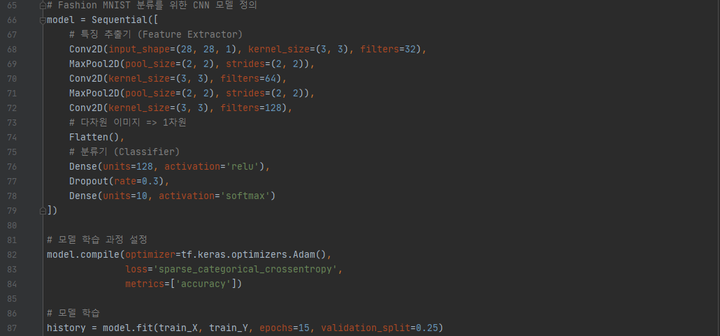 # Fashion MNIST 분류를 위한 CNN 모델 정의