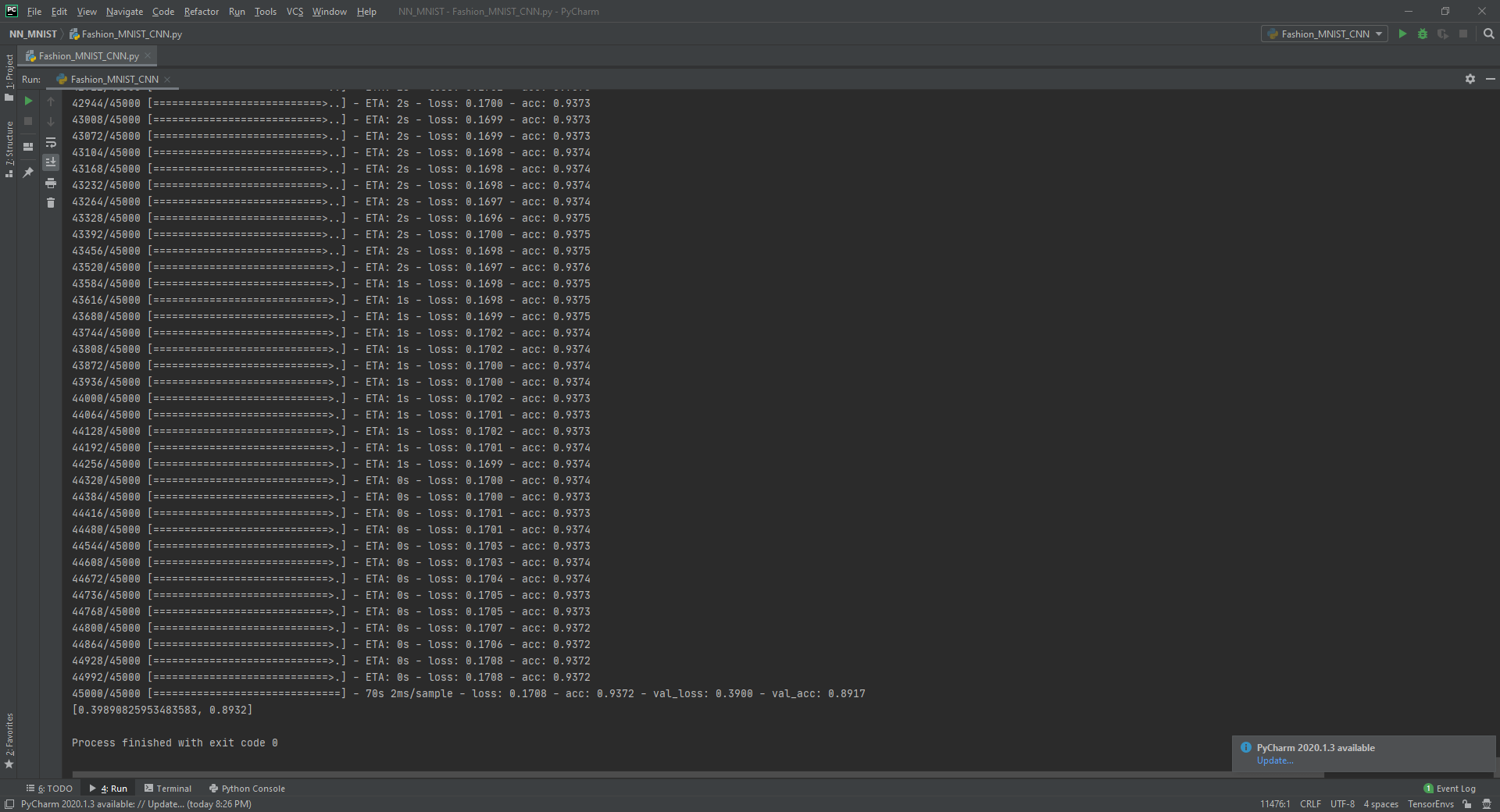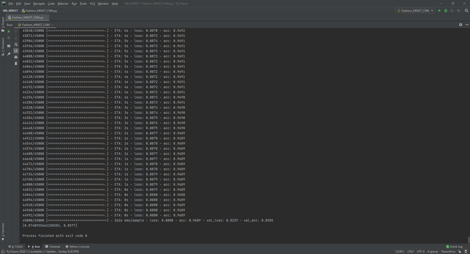 이제 Fasion MNIST를 TF2버전으로 Keras와 CNN 구조를 이용해 풀어보겠습니다. 먼저 아래는 코드 전문입니다.